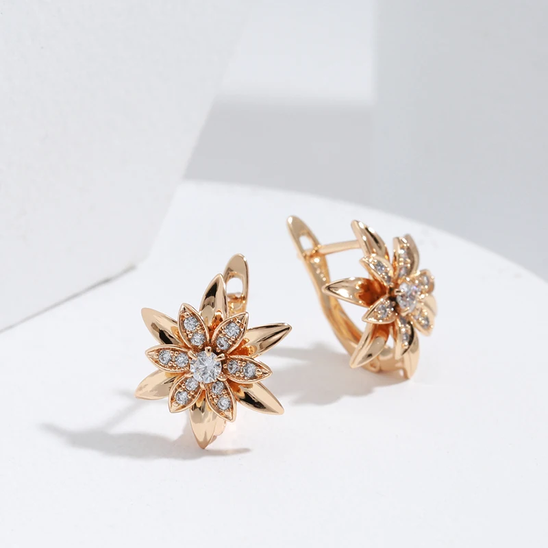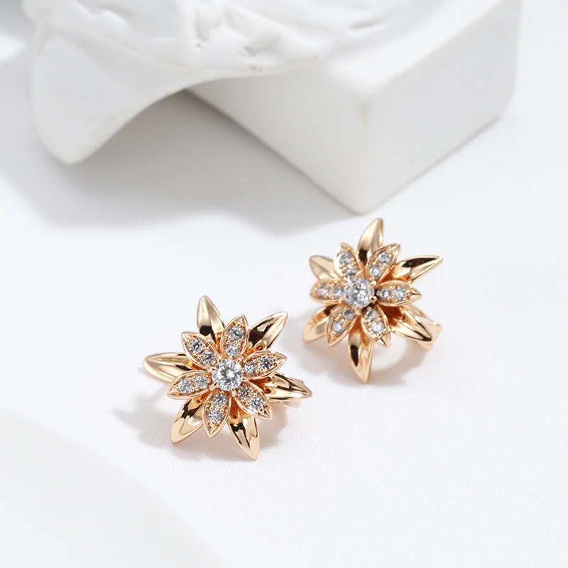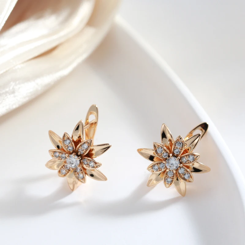 Kinel 2022 New 585 Rose Gold Sexy Earrings Unusual Metal Flower Natural Zircon Women's Earrings Party Girls Exaggerated Jewelry