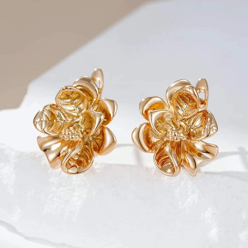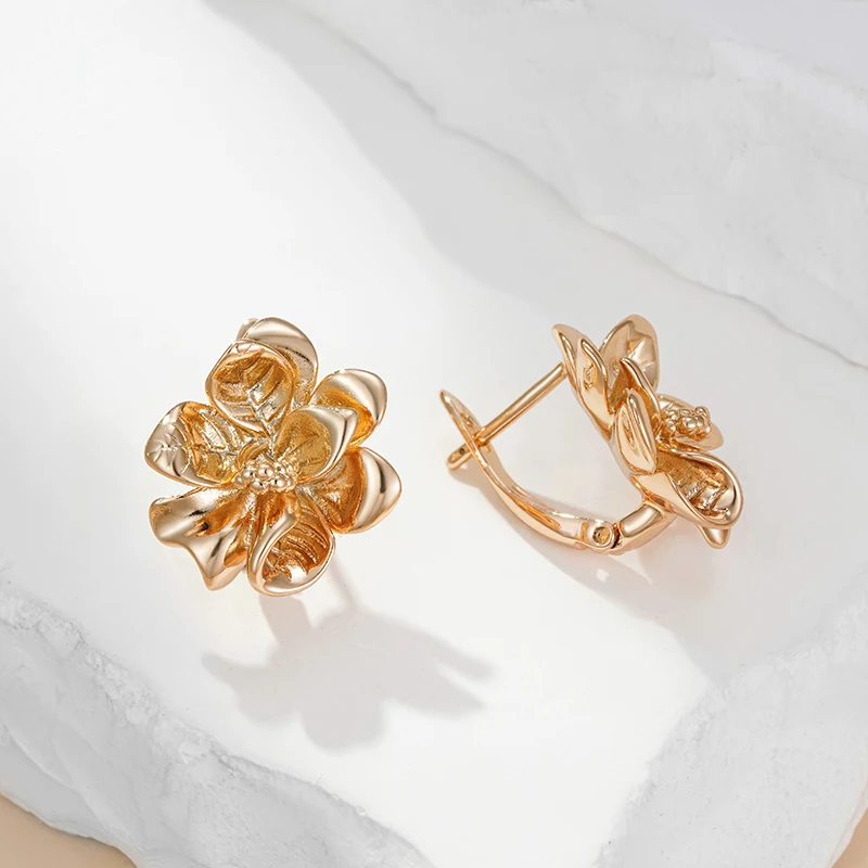Kinel Hot Unique Glossy Dangle Earrings for Women Fashion 585 Rose Gold Color Metal Flower High Quality Daily Fine Jewelry